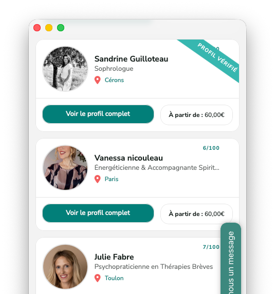 Hypnothérapeute, énergéticienne et praticienne PNL, je vous accompagne à retrouver votre bien être global.